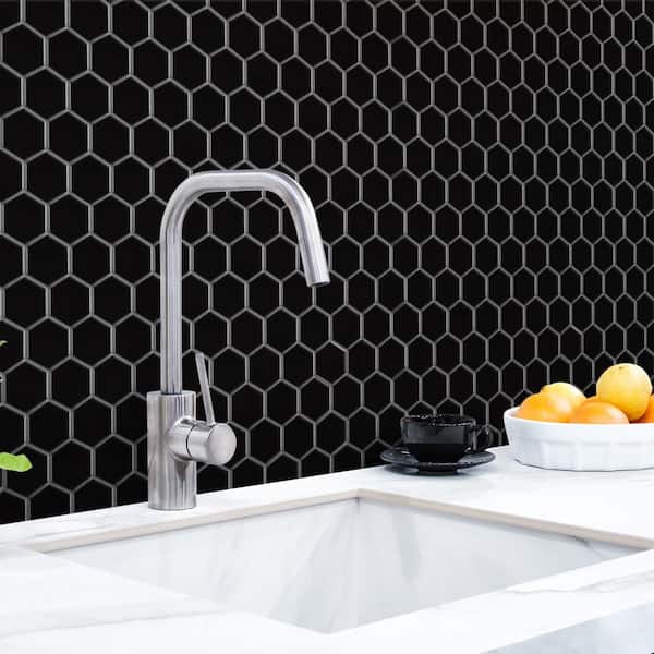 Metro 2 in. Hex Glossy Black 6 in. x 6 in. Porcelain Mosaic Take Home Tile Sample