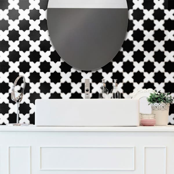 Metro 2 in. Star Matte Black with White Cross 12 in. x 12 in. Porcelain Floor and Wall Mosaic Tile (10.0 sq. ft. /Case)