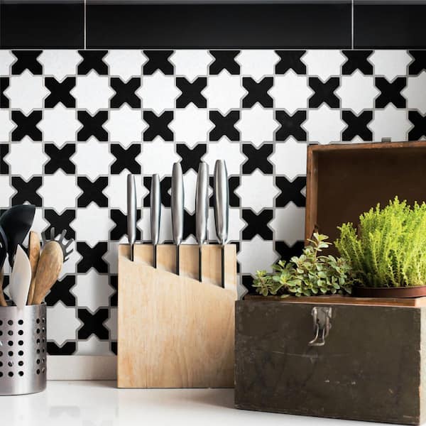 Metro 2 in. Star Matte White with Black Cross 12 in. x 12 in. Porcelain Floor and Wall Mosaic Tile (10.0 sq. ft. /Case)