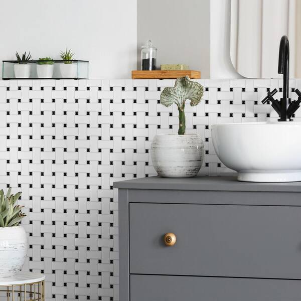 Metro Basketweave White with Black Dot 11-3/4 in. x 11-3/4 in. Porcelain Mosaic Tile (9.8 sq. ft./Case)