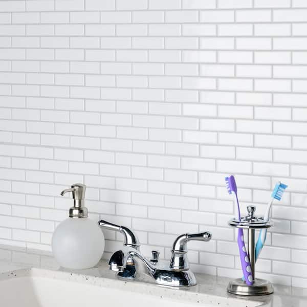 Metro Brick Subway Glossy White 6 in. x 6 in. Porcelain Mosaic Take Home Tile Sample