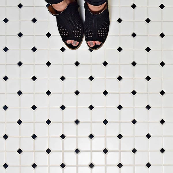 Metro Broadway Matte White with Black Dot 11-3/4 in. x 11-3/4 in. x 6 mm Porcelain Mosaic Tile