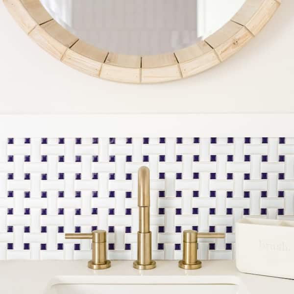 Metro Dog Bone Basketweave White with Cobalt Dot 6 in. x 6 in. Porcelain Mosaic Take Home Tile Sample