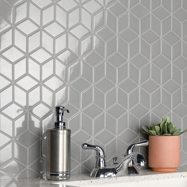 Metro Rhombus Glossy Light Grey 6 in. x 6 in. Porcelain Mosaic Take Home Tile Sample