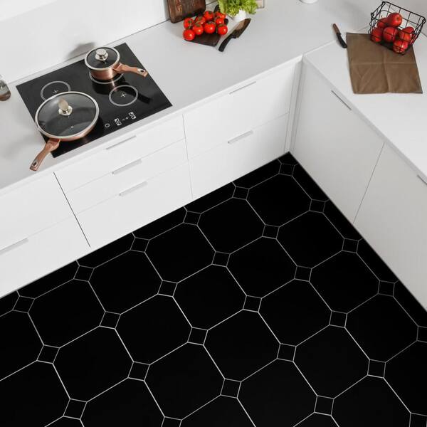 Monocolor Octagon Nero with Taco Nero 12 in. x 12 in. Ceramic Floor and Wall Take Home Tile Sample