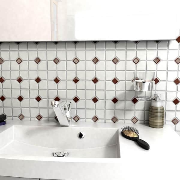 Oxford Matte White with Maroon Dot 6 in. x 6 in. Porcelain Mosaic Take Home Tile Sample