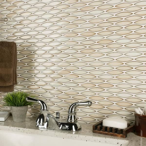 Pescado Glossy Crema 6 in. x 6 in. Porcelain Mosaic Take Home Tile Sample