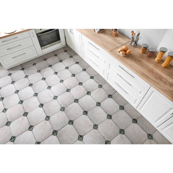 White and green square porcelain floor and wall tile