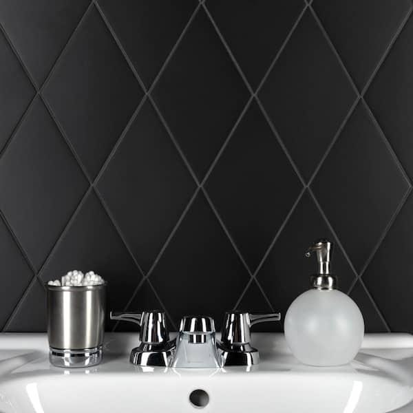 Rhombus Smooth Black 5-1/2 in. x 9-1/2 in. Porcelain Floor and Wall Take Home Tile Sample
