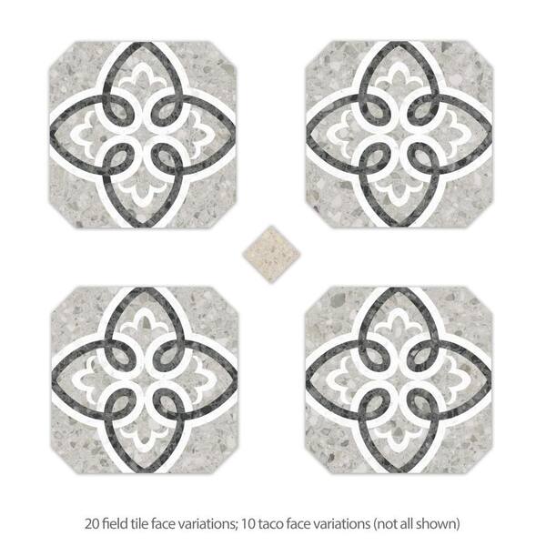 Riviera Octagon Garde Gris with Taco Beige 8 in. x 8 in. Porcelain Floor and Wall Take Home Tile Sample