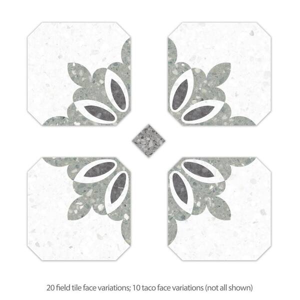 Riviera Octagon Verde with Taco Nero 8 in. x 8 in. Porcelain Floor and Wall Take Home Tile Sample
