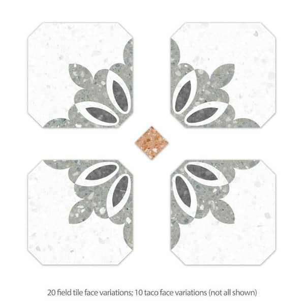 Riviera Octagon Verde with Taco Rojizo 8 in. x 8 in. Porcelain Floor and Wall Take Home Tile Sample