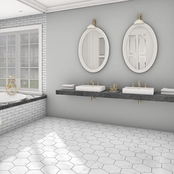 Timeless Calacatta Hex 8-5/8 in. x 9-7/8 in. Porcelain Floor and Wall Take Home Tile Sample