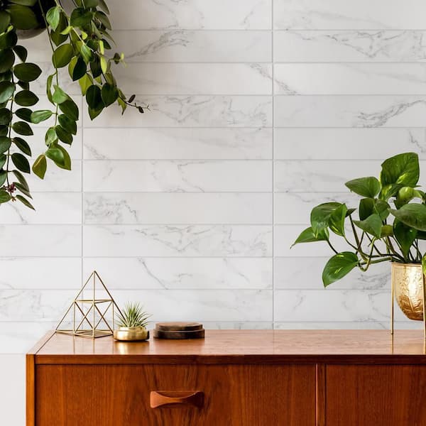 Tinos White 3-1/8 in. x 17-3/8 in. Porcelain Floor and Wall Tile (12.0 sq. ft. /Case)
