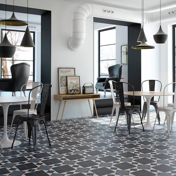 Black and blue square porcelain floor and wall tile