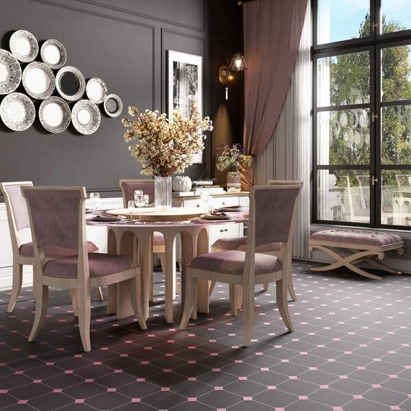 Vaudeville Octagon Antracita with Taco Pink 8 in. x 8 in. Porcelain Floor and Wall Take Home Tile Sample