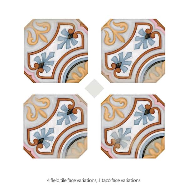 Vaudeville Octagon Deco Diglas with Taco Nacar 8 in. x 8 in. Porcelain Floor and Wall Take Home Tile Sample
