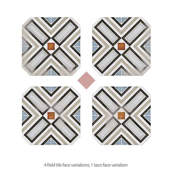 Vaudeville Octagon Deco Ritter with Taco Pink 8 in. x 8 in. Porcelain Floor and Wall Take Home Tile Sample