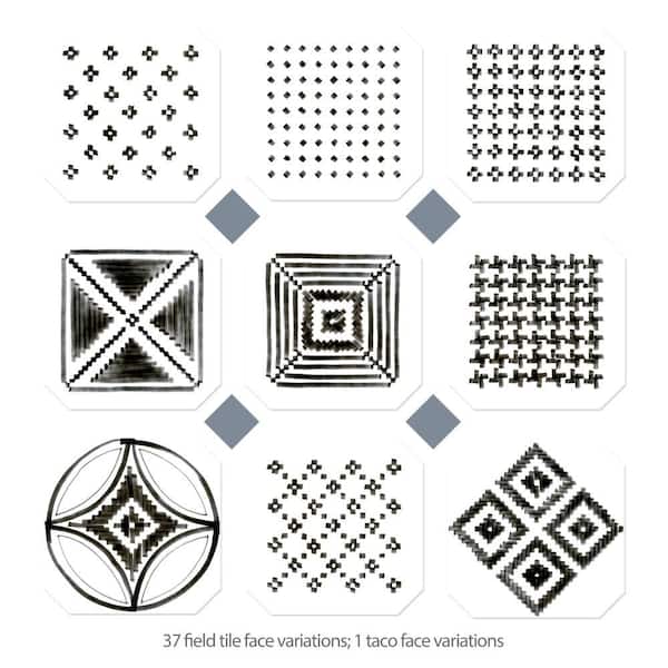 Vaudeville Octagon Deco Sombra with Taco Azzuro 8 in. x 8 in. Porcelain Floor and Wall Take Home Tile Sample