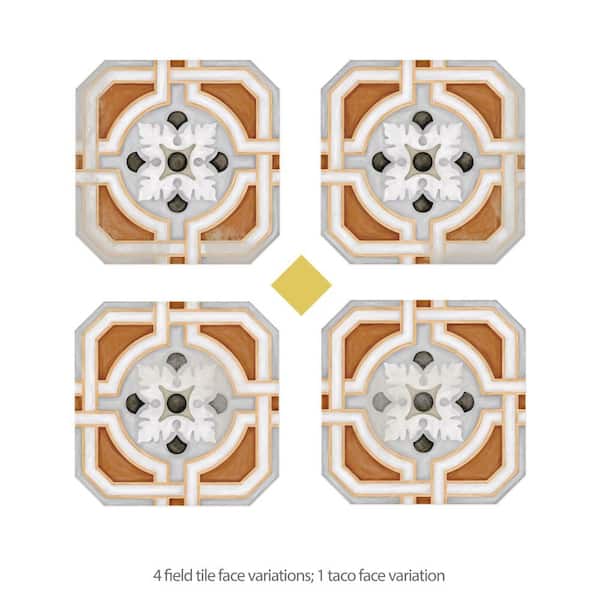 Vaudeville Octagon Deco Zimmer with Taco Lima 8 in. x 8 in. Porcelain Floor and Wall Take Home Tile Sample