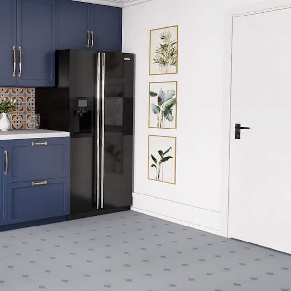 Vaudeville Octagon Humo with Taco Azzuro 8 in. x 8 in. Porcelain Floor and Wall Take Home Tile Sample