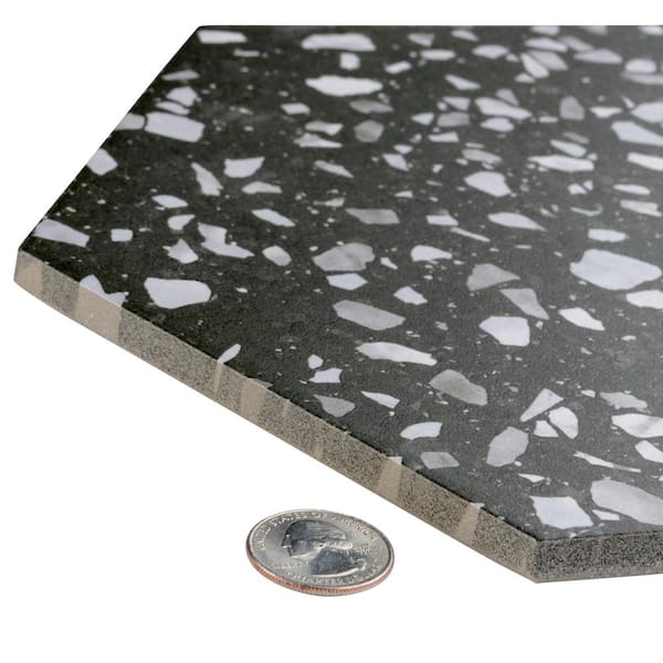 Venice Hex Black 8-5/8 in. x 9-7/8 in. Porcelain Floor and Wall Take Home Tile Sample