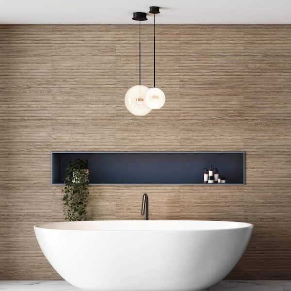 Woodstrip Nogal 11-3/4 in. x 11-3/4 in. Ceramic Wall Take Home Tile Sample