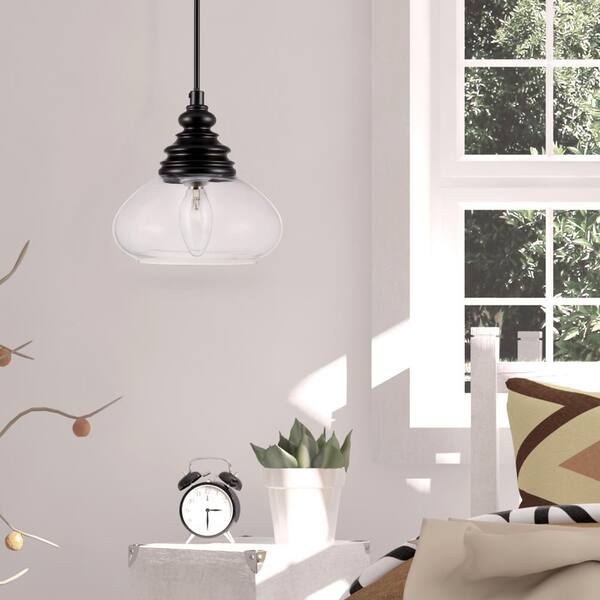 1-Light Antique Brown Farmhouse Mini Pendant with Wood Accent