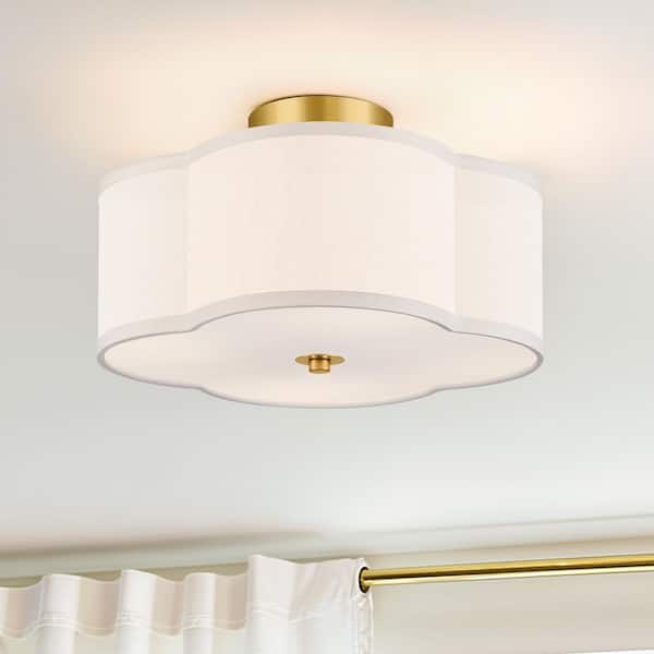 12.6 in. 4-Light Fabric Semi Flush Mount Ceiling Light Fixture with Fabric Shade, Acrylic Diffuser and E26 Bases