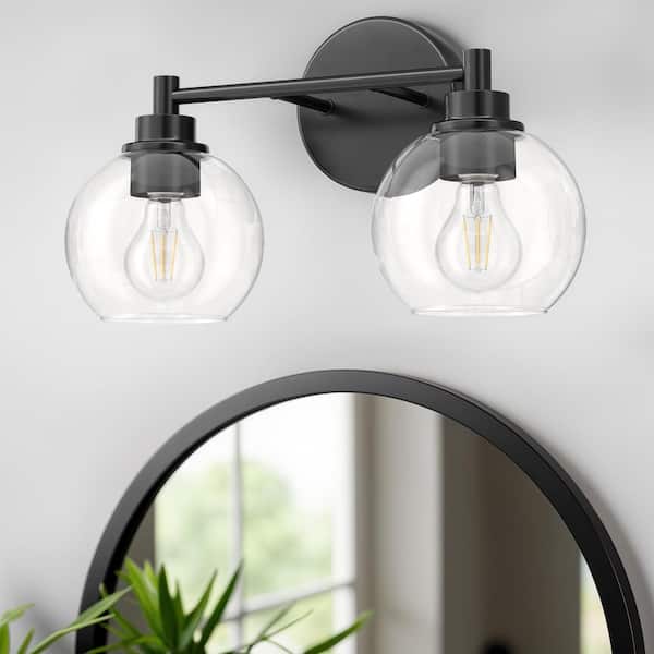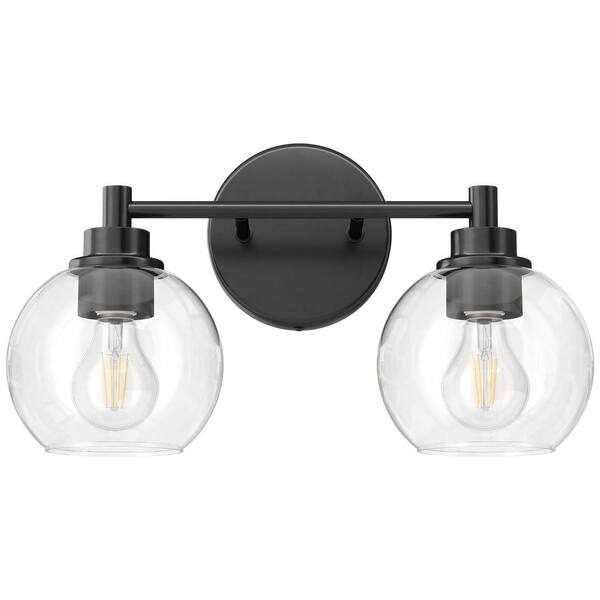 14.6 in. 2-Light Matte Black Vanity Light with Clear Glass Shade E26 Sockets for Bathroom Bedroom Hallway Living Room