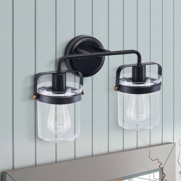 16 in. 2-Light Matte Black Vanity Light with Clear Glass Shade