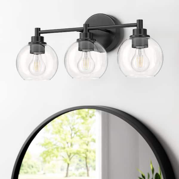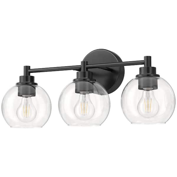 19.5 in. 3-Light Matte Black Vanity Light with Clear Glass Shade E26 Sockets for Bathroom Bedroom Hallway Living Room