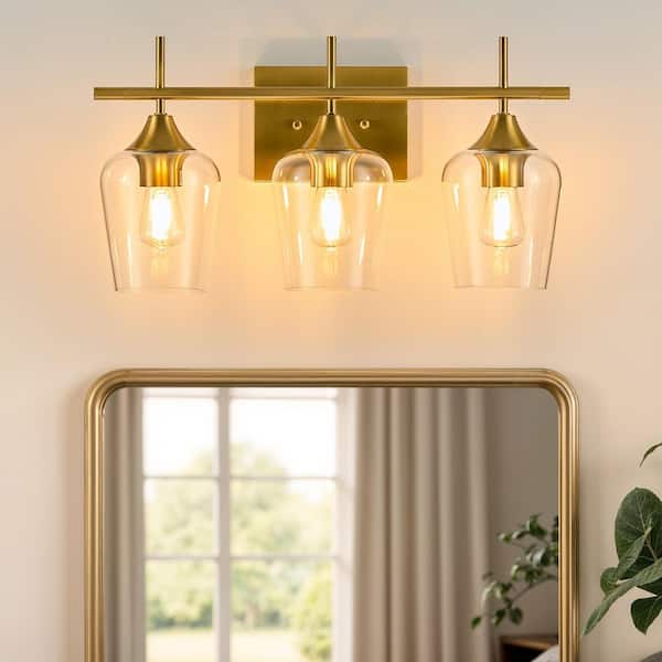3-Light Antique Brass Wall Sconce Vanity Lights with Glass Shade