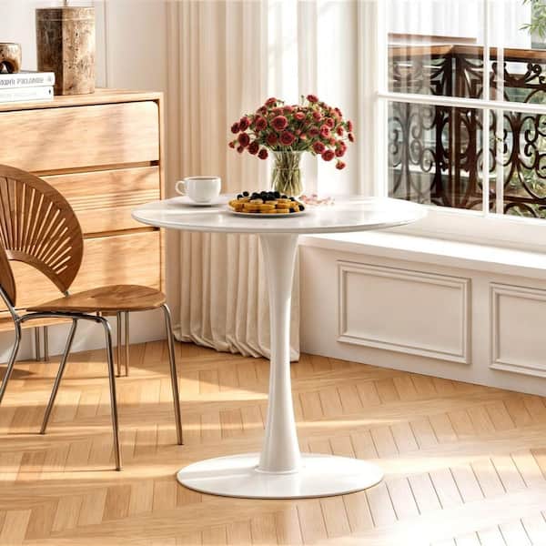 31.5 in. Round White MDF Top Modern Dinning Table (Seats 2-4)