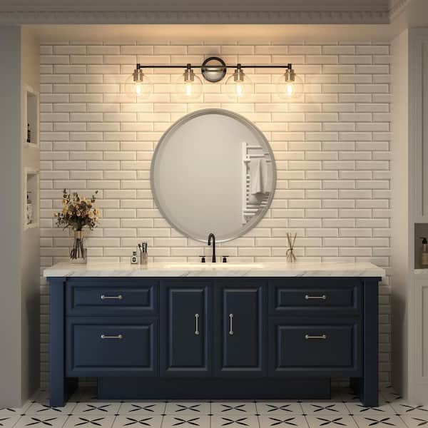 33.5 in. 4-Light Black & Nickel Vanity Light with Clear Glass Shade E26 Sockets for Bathroom Bedroom Hallway Living Room