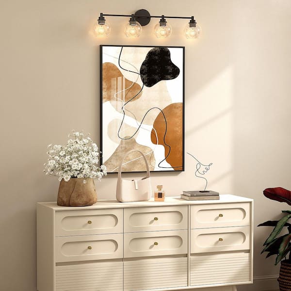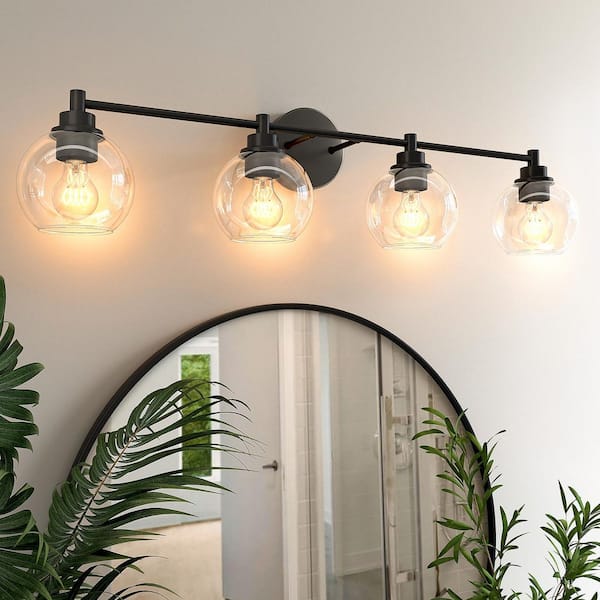 33.5 in. 4-Light Matte Black Vanity Light with Clear Glass Shade E26 Sockets for Bathroom Bedroom Hallway Living Room