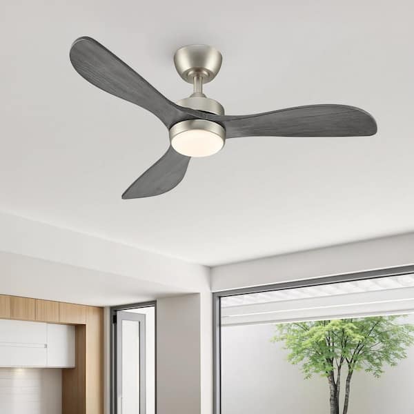 • Modern 42 in. low profile ceiling fan with satin nickel finish