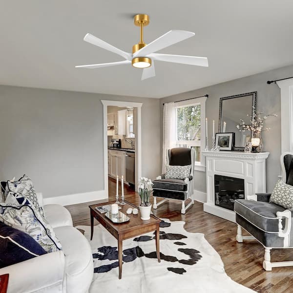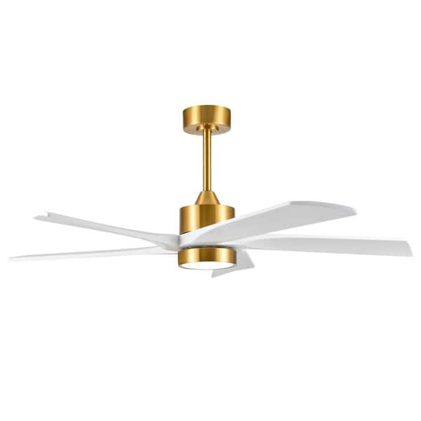 52 in. 5-Blade Indoor White Modern Standard Ceiling Fan with LED Light Solid Wood Blades