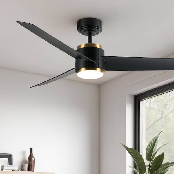 52 in. Indoor Gold Black Standard Ceiling Fan with Dimmable 3000-6500K Adjustable White Integrated LED & Remote