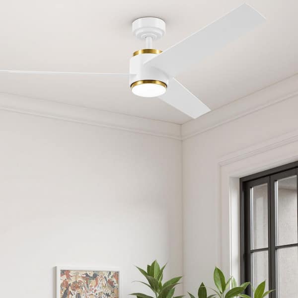 52 in. Indoor Gold White Standard Ceiling Fan with Dimmable 3000-6500K Adjustable White Integrated LED and Remote