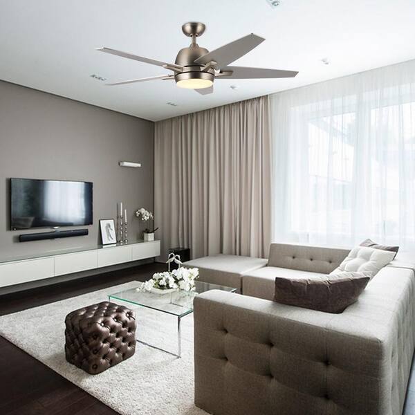 52 in. LED Indoor Brushed Nickel Ceiling Fan with Light Kit and Remote Control