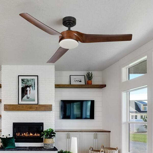 52 in. LED Indoor Walnut Modern Smart Ceiling Fan with Dimmable Light Kit and Remote