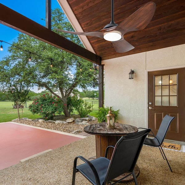 52 in. Outdoor Matte Black Waterproof Ceiling Fan with 3000K-6500K Adjustable White Integrated LED and Remote Control