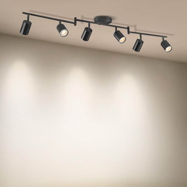 6-Light 4 ft. Matte Black Ceiling Mounted Hardwired Track Lighting Kit with Adjustable Heads and 6-Bulbs Included
