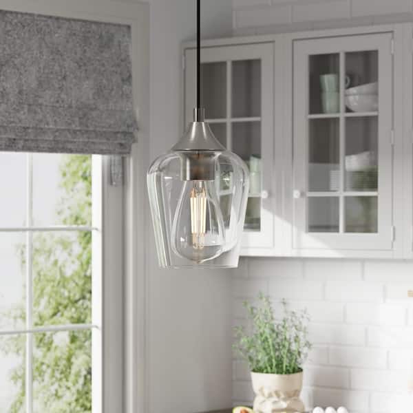 60 Watt 1-Light Brushed Nickel Mini Pendant Light with clear Glass Shade and Adjustable Height