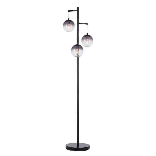 66 in. Black Modern Tree Floor Lamp with 3 Hanging Round Glass Shades