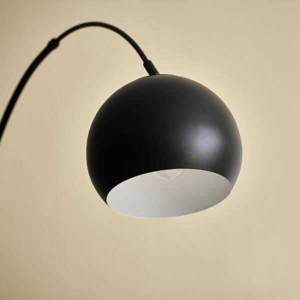 70 in. Arcing Modern Floor Lamp in Black and Marble with Rotating Shade