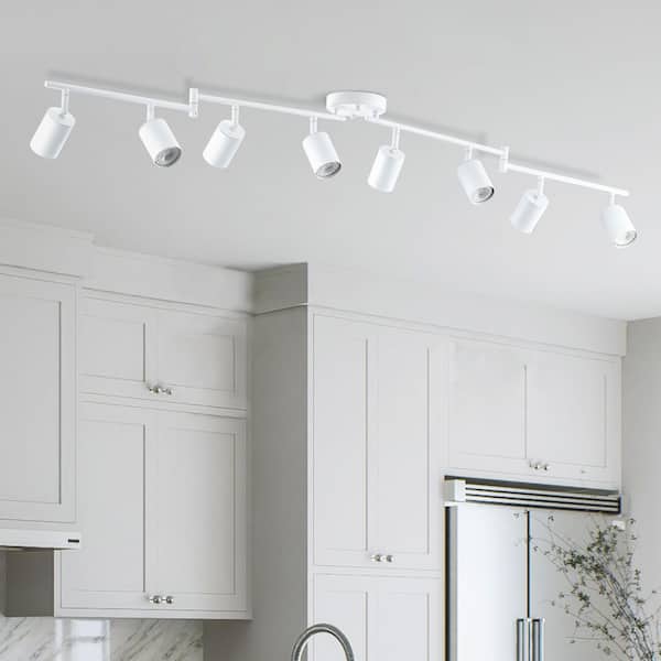 8-Light 4.5 ft. Matte White Ceiling Mounted Hardwired Track Lighting Kit with Adjustable Heads and 8-Bulbs Included