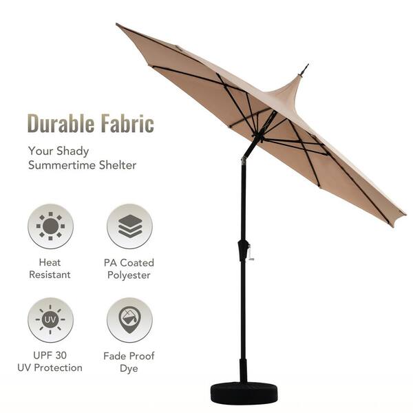 9 ft. Wide Crank Handle Market Patio Umbrella with Pagoda Tip in Beige