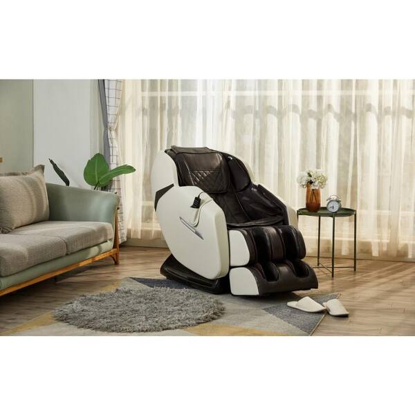 Beige Zero Gravity Recliner Massage Chair with SL Track Heating Pads Foot Rollers and Bluetooth Speakers
